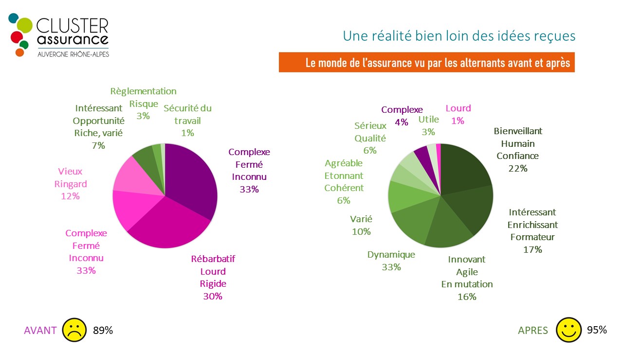 De 89% péjoratif, avant leur alternance, à 95% positif, après 1 an d’expérience professionnelle dans l’assurance, l’enseignement est catégorique !